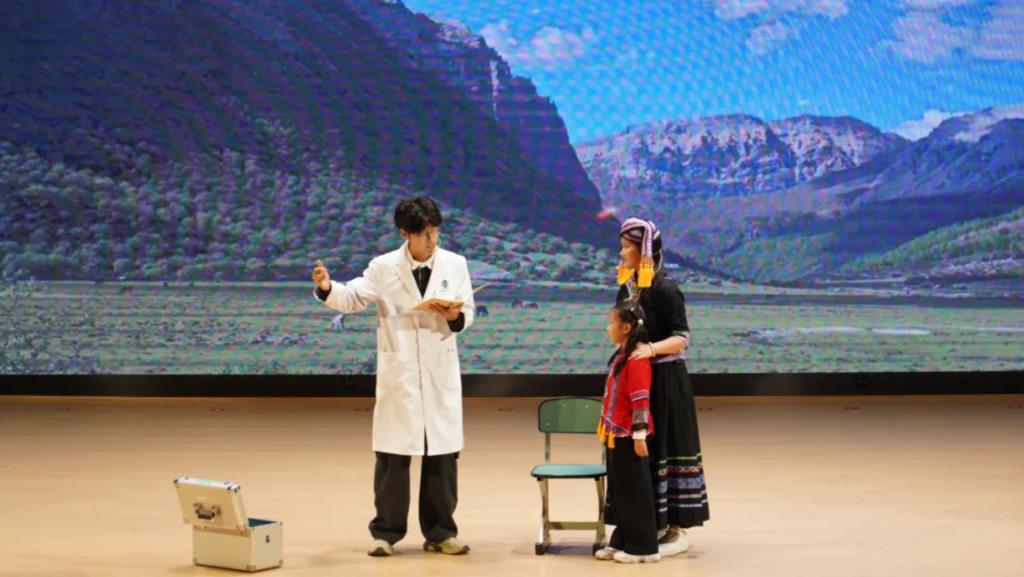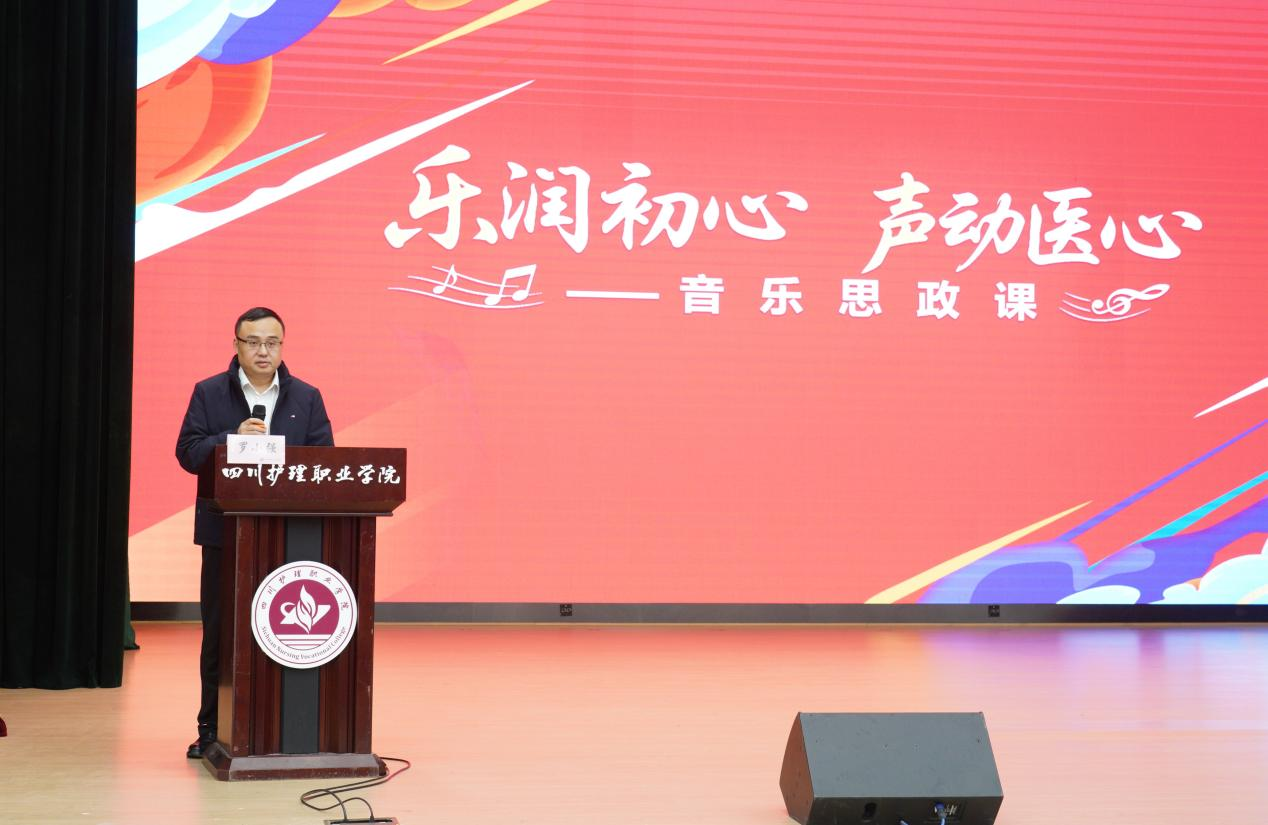 学校党委副书记、纪委书记罗小强主持并致辞。他指出,“花开杏林”大讲堂是学院精心打造的文化品牌,旨在融汇“立德树人、文化浸润、技能传承”之宗旨,推动中华优秀传统文化与医学教育深度融合。本期创新采用音乐思政课的形式,是构建“大思政”育人格局、探索“三全育人”新路径的又一重要实践。