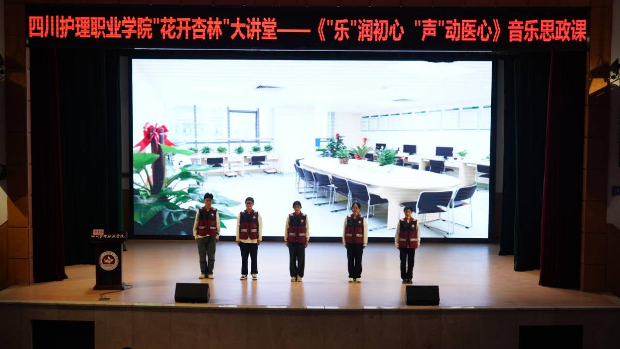 为深入贯彻落实习近平文化思想,大力弘扬中华优秀传统文化,11月13日,学院第二期“花开杏林”大讲堂在成都校区精彩开讲。本期讲堂以《“乐”润初心 “声”动医心》为主题,特邀西南医科大学附属医院师生团队,为学院师生代表呈现了一堂别开生面的音乐思政课。学校在家校领导、全体中层干部、专兼职思政课教师、辅导员、学生代表等300余人到场参加。
